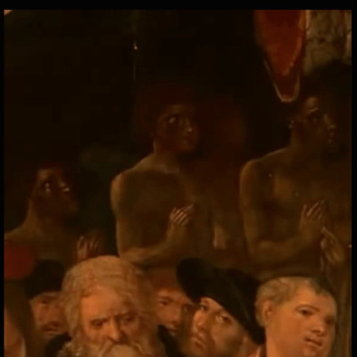 The first and most accurate painting of Christopher Columbus and the Indigenous Americans he brought back to Europe with him.
